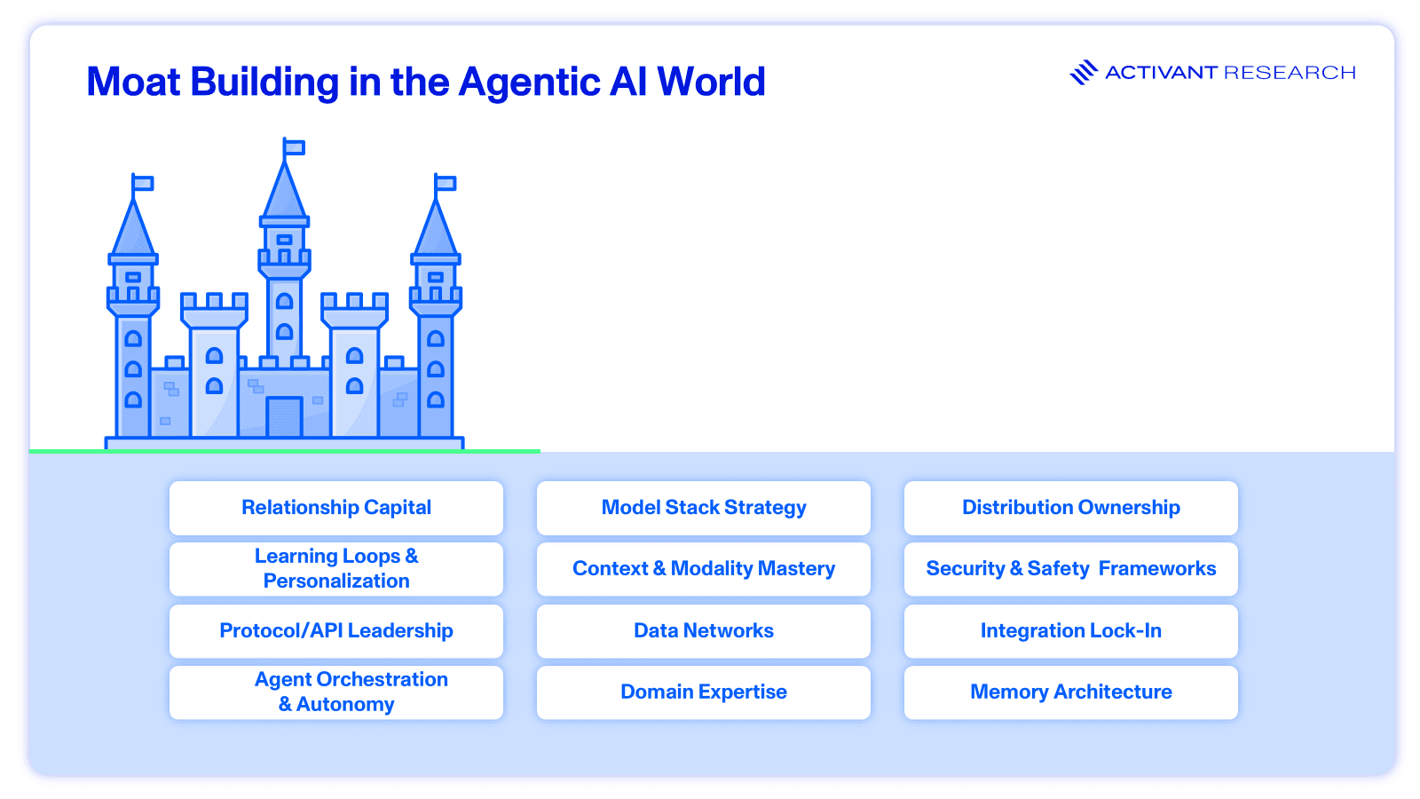As the AI landscape consolidates, a battleground emerging is the rise of the agent marketplaces. These, often controlled by the tech giants, are strategic ecosystems designed to lock in enterprise customers and commoditize third-party features. In an era dominated by platform “gravity wells” and the constant threat of commoditization, the old SaaS playbook could be insufficient. Founders must adopt a new doctrine of defensibility; one built to withstand the pressures of consolidation. Survival, let alone success, requires a rigorous focus on creating a durable competitive advantage. Our research has identified three core pillars for building a durable moat: relationship capital, model stack strategy, and distribution ownership.