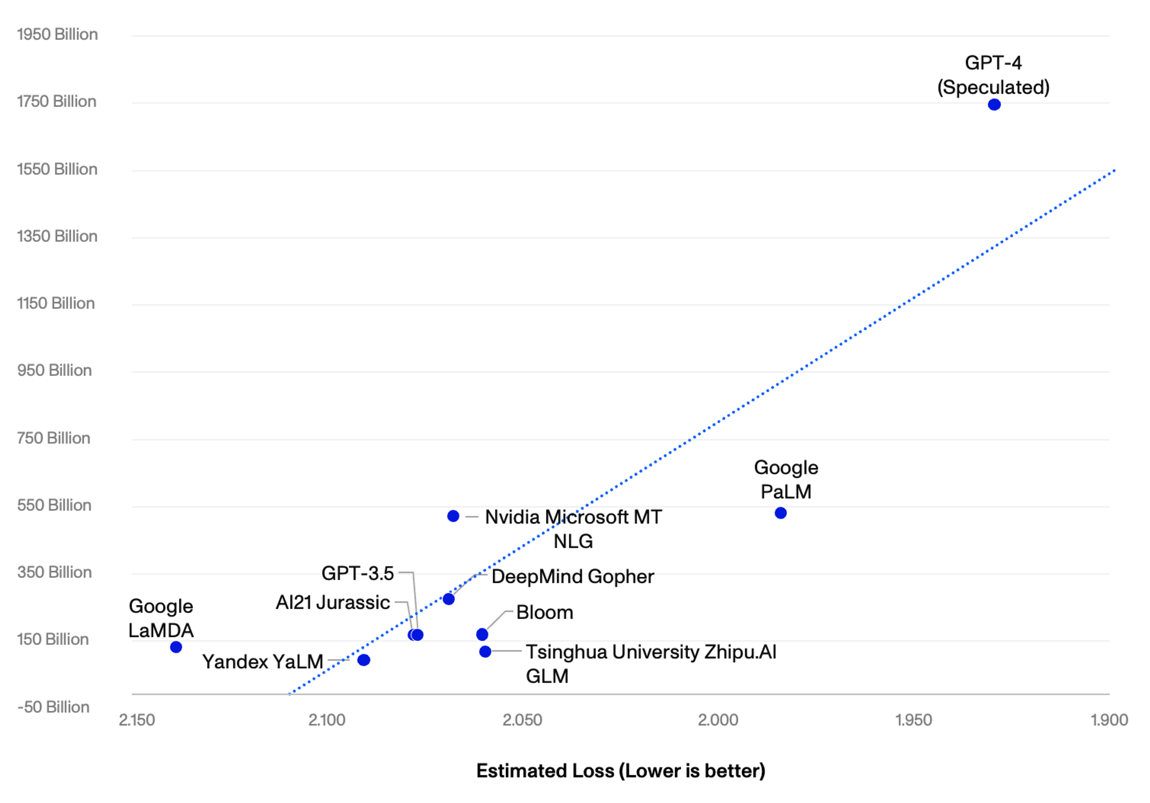 [1] Estimated Loss herein refers to an approximation derived in: Hoffmann et. al, Training Compute-Optimal Large Language Models, 2022
