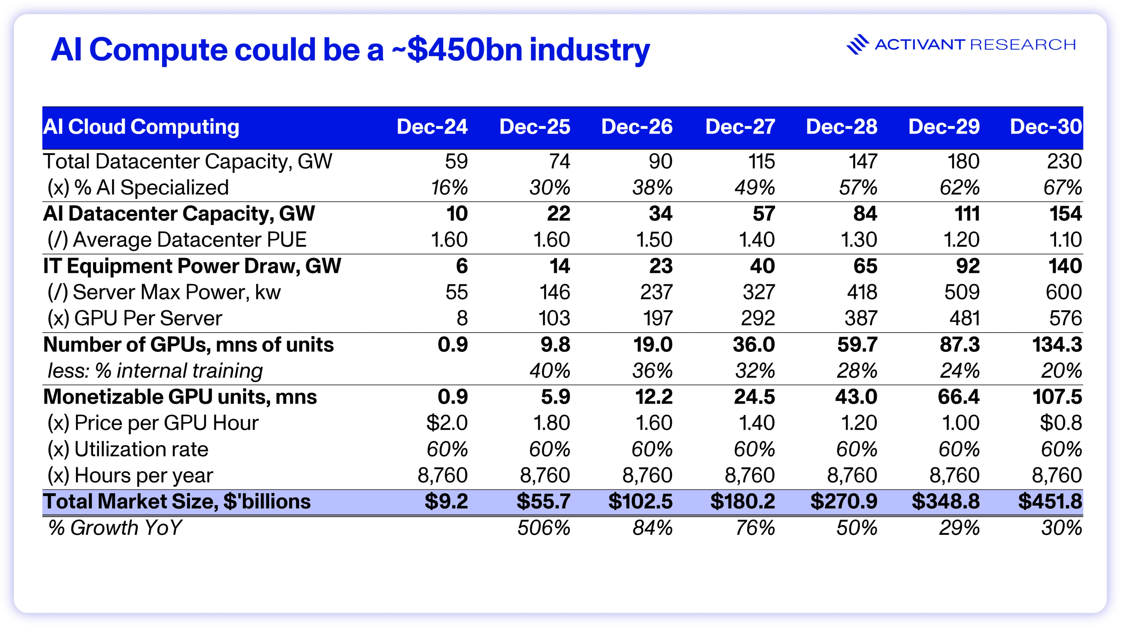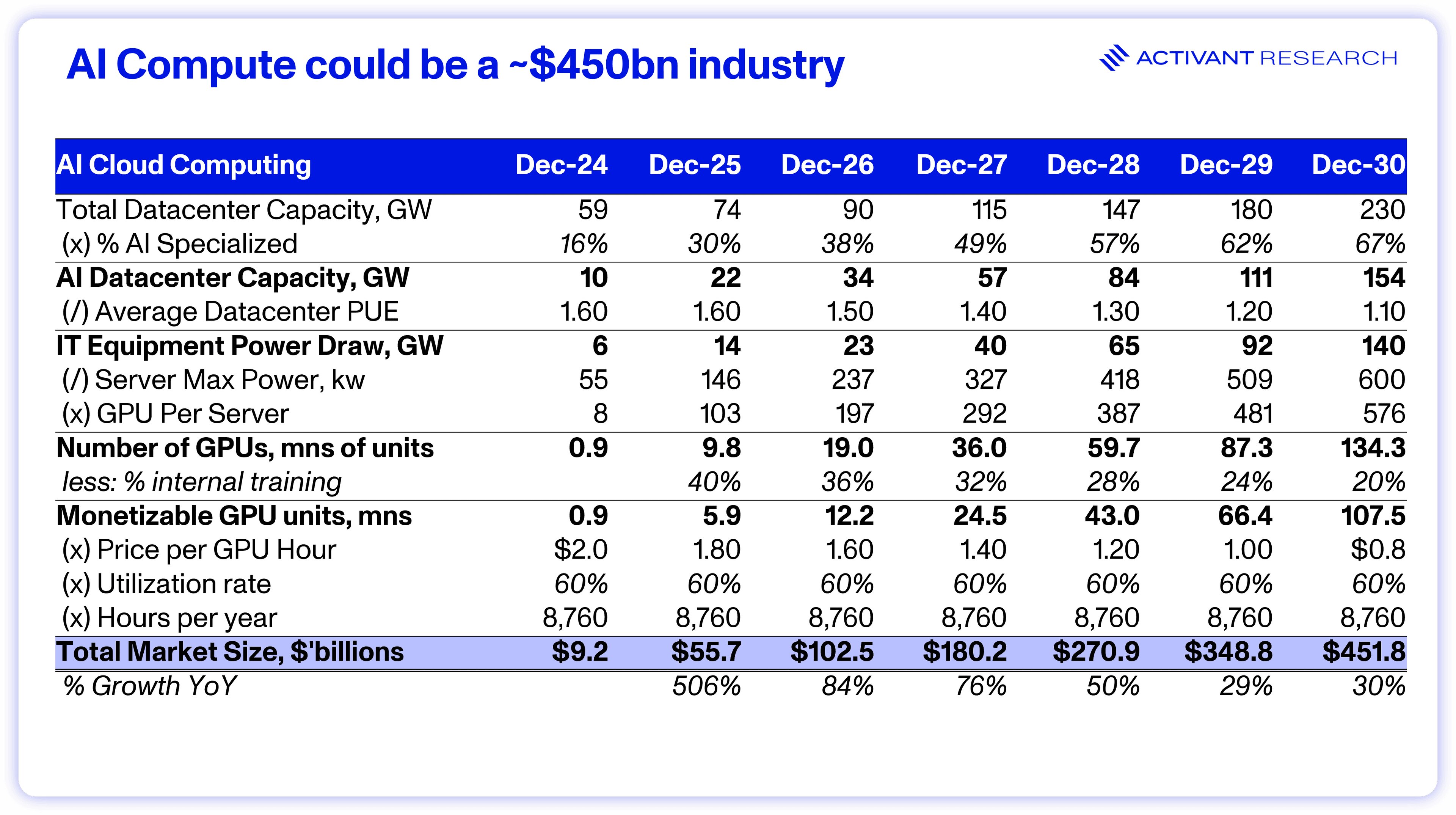 The (general) rationality of this infrastructure buildout lays the foundation for the success of the entire AI infrastructure stack, from AI cloud compute all the way up to model observability. We believe that the AI infrastructure market is at the early stages of a structural expansion that will create an AI Cloud Computing market worth ~$450bn and support many significant businesses all the way up the stack.
