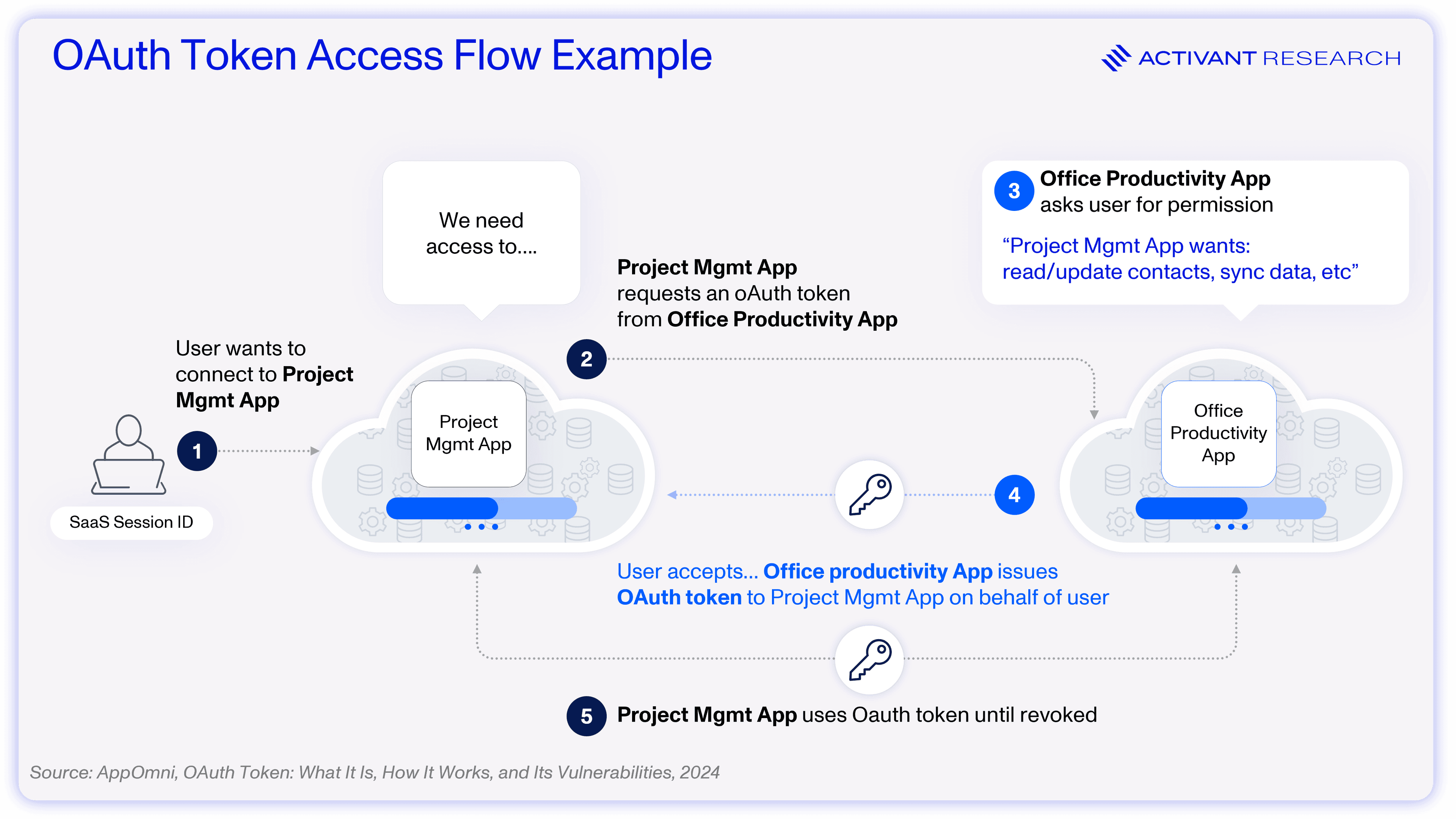 Consider the following example: a user approves access for a project management app to read their contacts from their core productivity suite (likely Microsoft 365). The flow is relatively simple and ubiquitous across many apps, highlighting the innovation that the OAuth standard has brought to the identity market. However, note that in this example (as in many real-world cases) the token is valid until manually revoked.