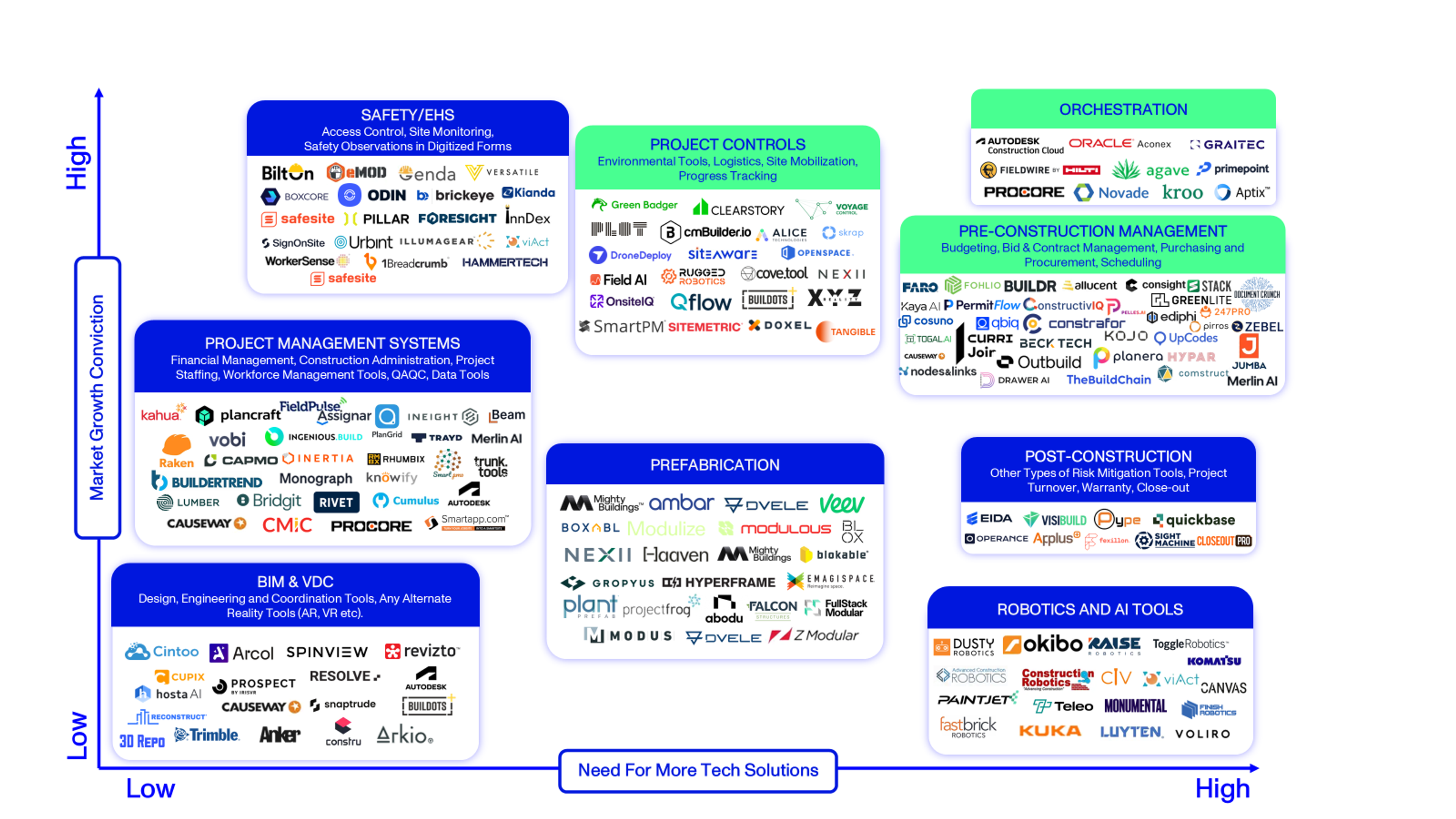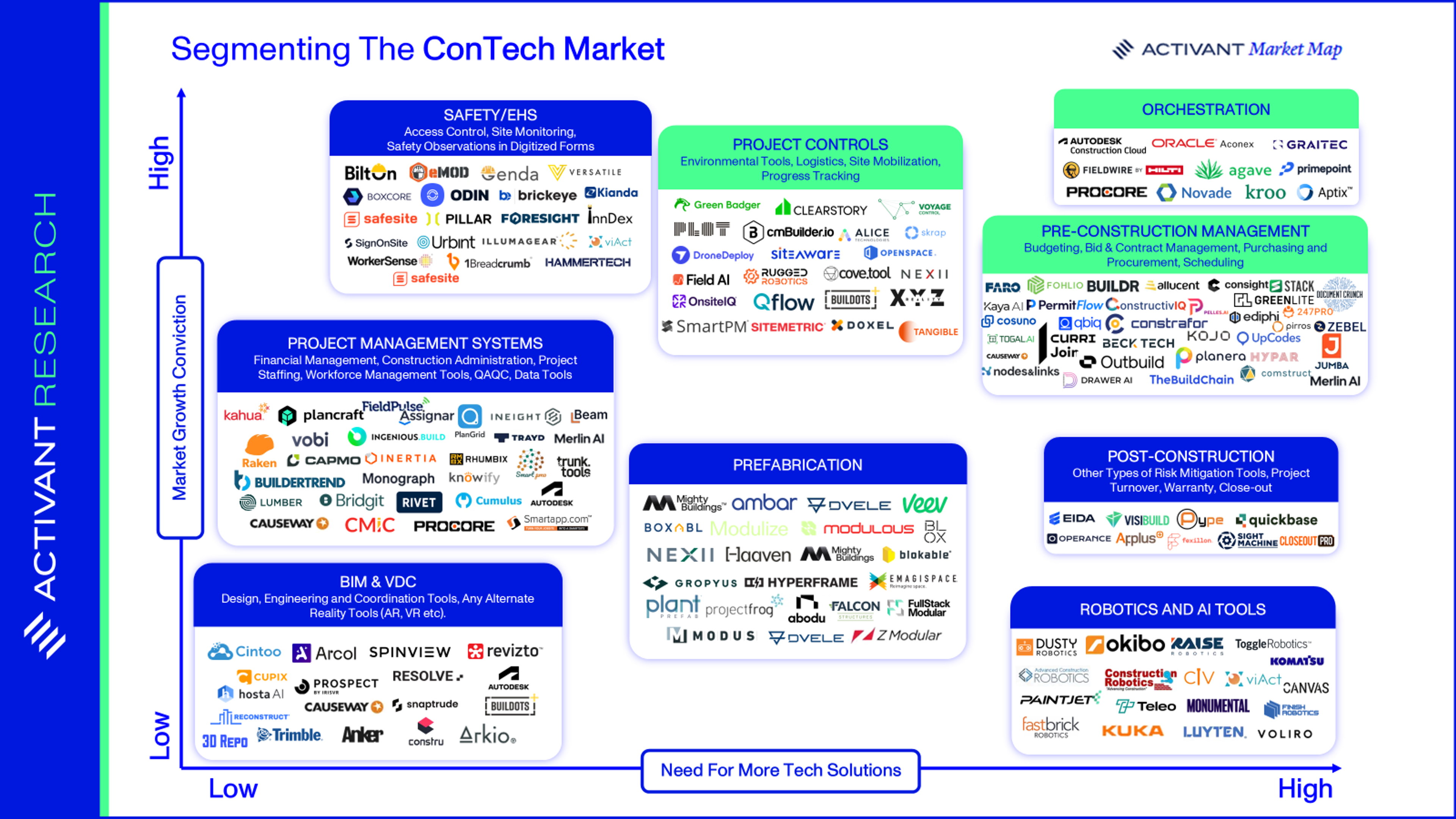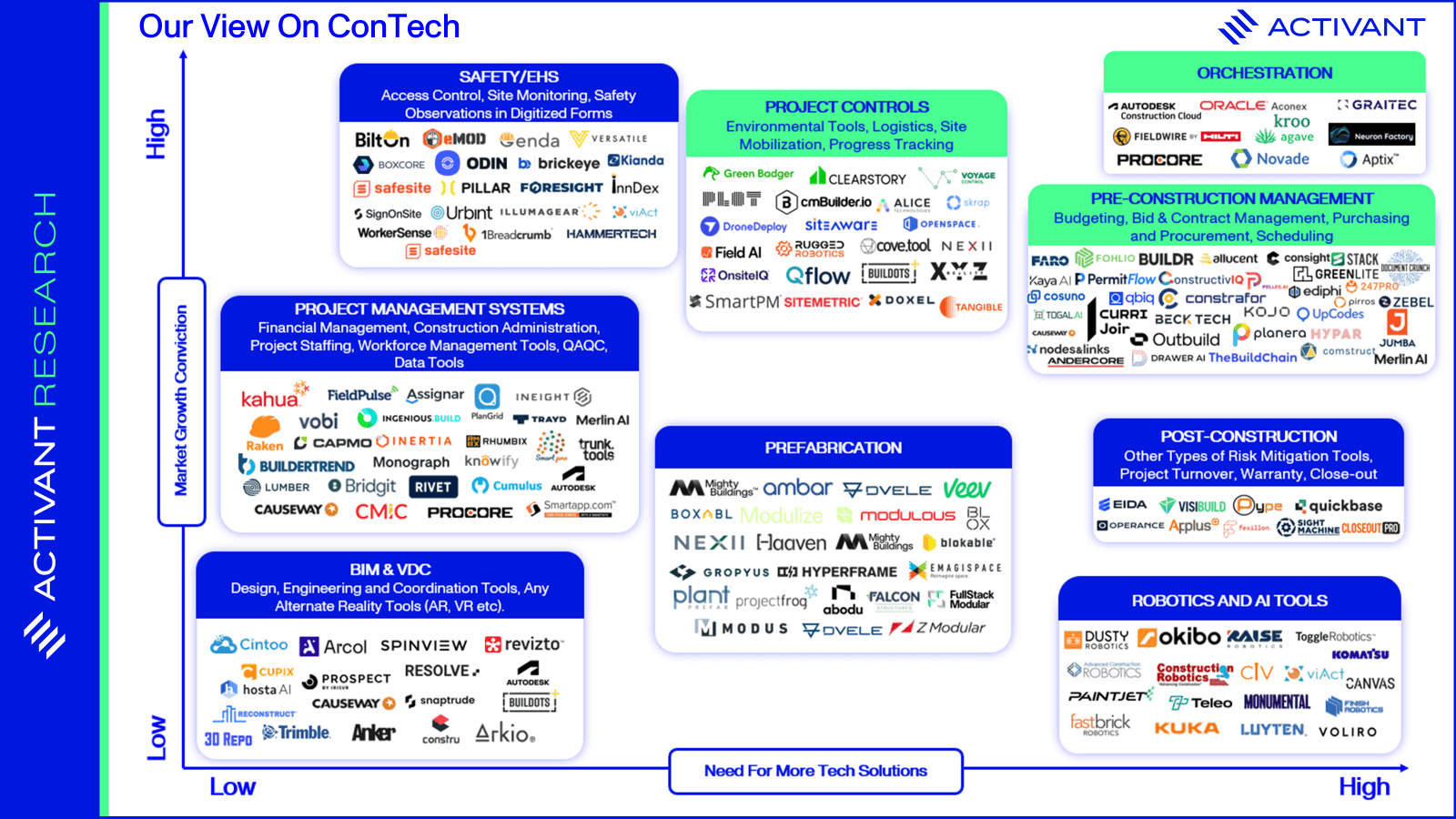 Importantly, the narrative is no longer just theoretical. Over the last few years, we’ve seen a surge of startup activity, venture funding, and real adoption that validates this thesis. ConTech is transforming from a niche backwater to a vibrant ecosystem of companies attacking every piece of the value chain.
