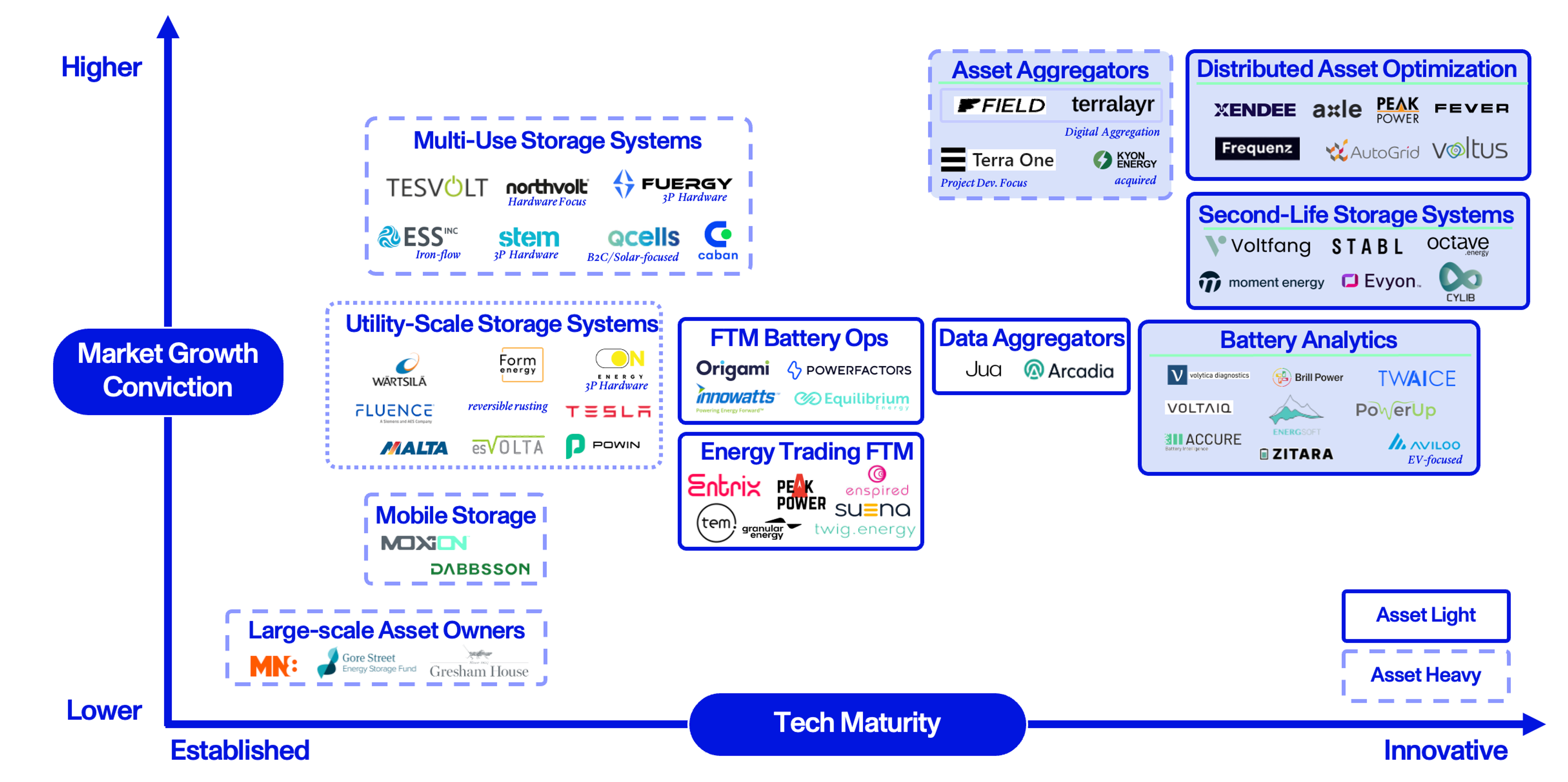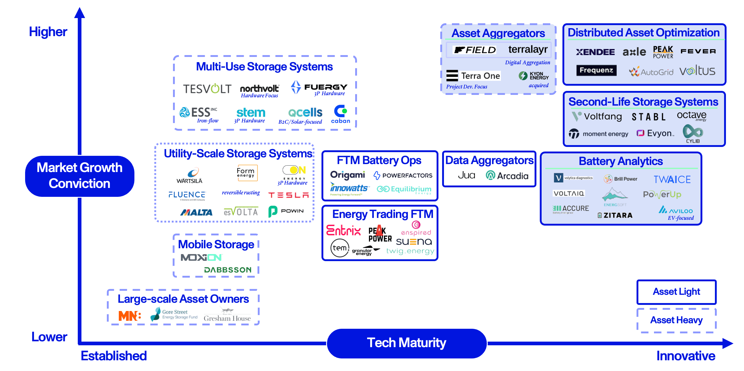- Terralayr: A Zug-based company operating in the asset aggregator space. Terralayr is a co-developer, owner and operator of short-duration BESS. The company’s business model is based on aggregating both owned and 3rd party front-of-meter, utility-scale storage assets, which are in turn virtualized into a central, cloud-like system.