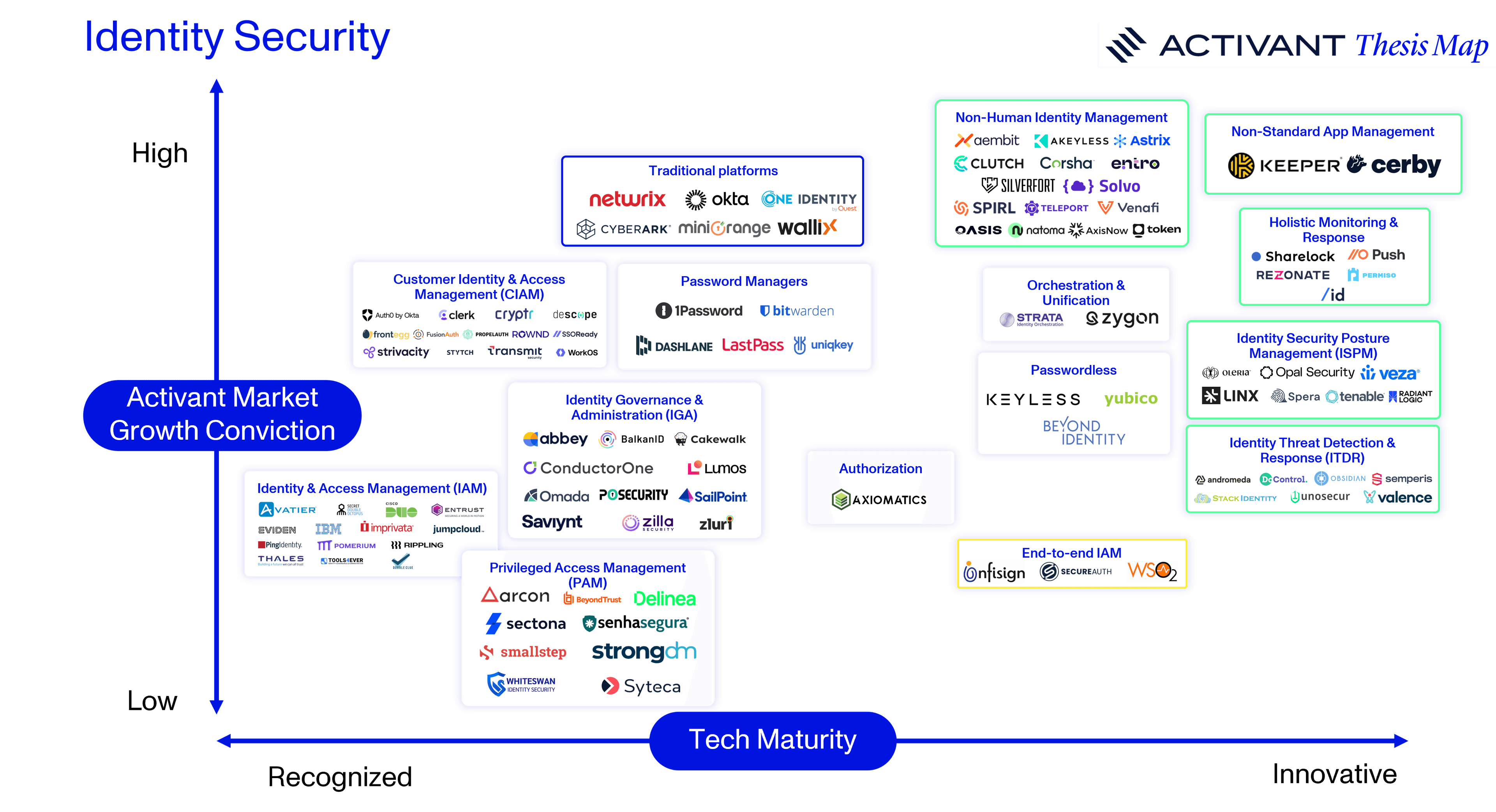 We’re excited about the innovative segments of this new security layer such as non-standard app management, ISPM & ITDR, non-human identity management, and identity orchestration. Companies like Opal Security, Oleria, Entro, Andromeda, Zygon, Strata, Beyond Identity, Astrix Security, Oasis Security, Zluri and Cerby are driving this innovation and will be the major beneficiaries of the next wave of growth in the identity industry.