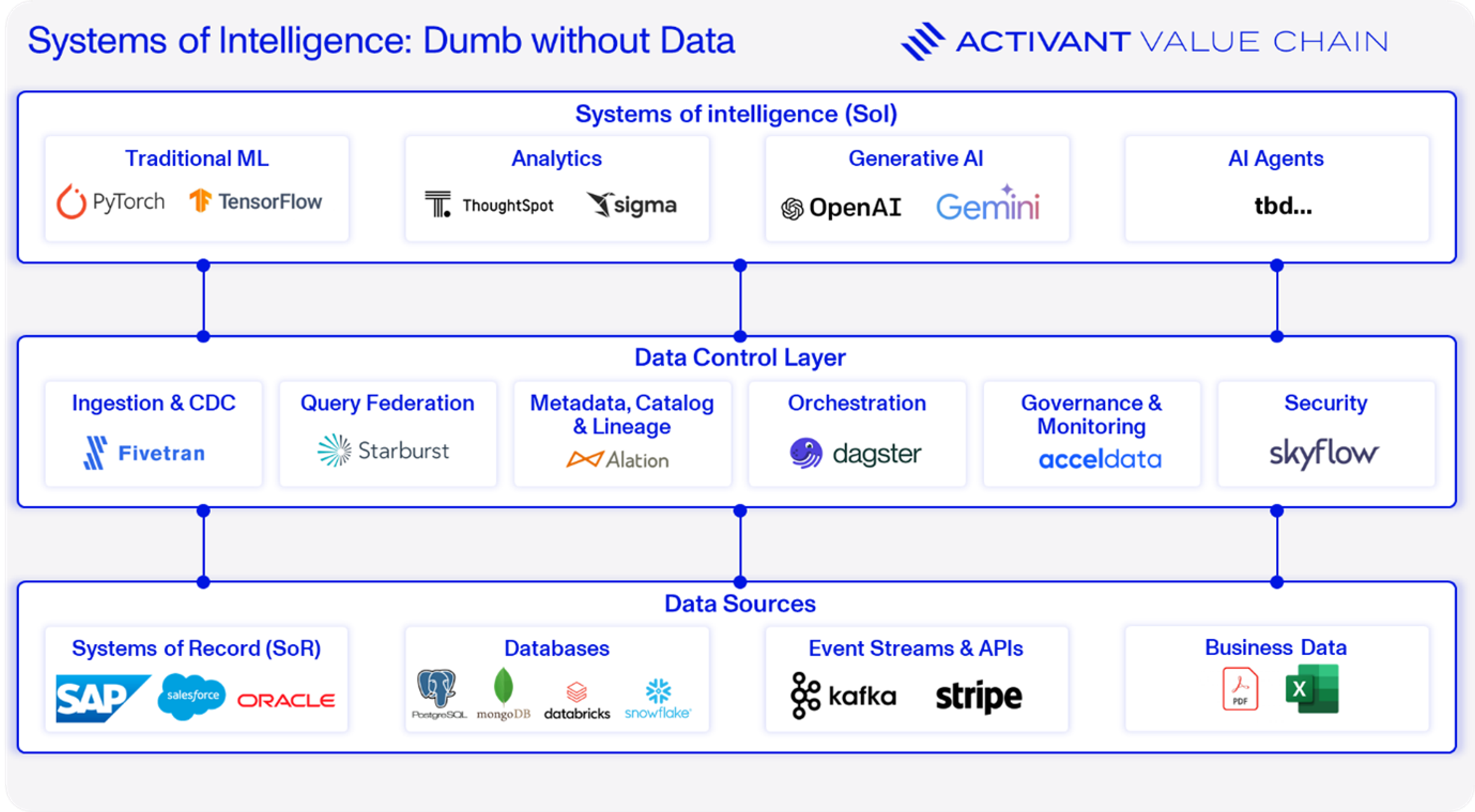Well, Salesforce are acquiring Informatica and ServiceNow acquired data catalog and metadata company data.world (to launch their "workflow data fabric"). These are the exact tools needed to build out the data control layer that AI products will need. The SoRs are racing to build out the capabilities to not just hold data, but to intelligently act on it.