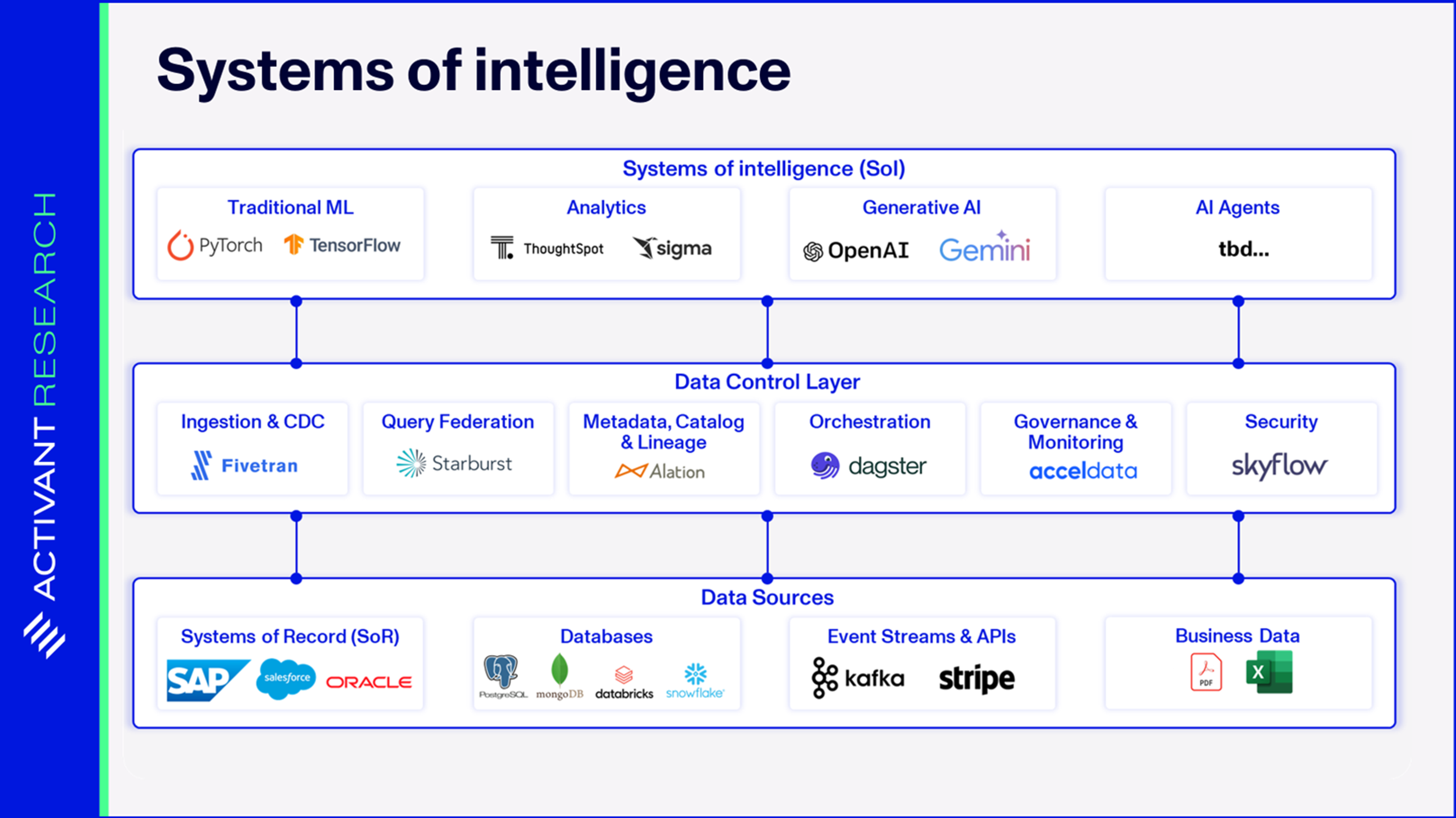 Salesforce's is acquiring Informatica for $8 billion. The official narrative? To "enhance Salesforce's trusted data foundation critical for deploying powerful and responsible agentic AI." A sensible, forward-looking statement. Yet, as we at Activant Research dig deeper, we see this move as far more than a simple AI enablement play. It's a potent signal of a fundamental disruption Salesforce is grappling with: the seismic shift from Systems of Record (SoR) to Systems of Intelligence (SoI). This isn't just another enterprise software acquisition. It's an $8 billion alarm bell signaling that we've reached an inflection point where the fundamental value proposition of enterprise software is shifting from capturing data to acting on it autonomously.
