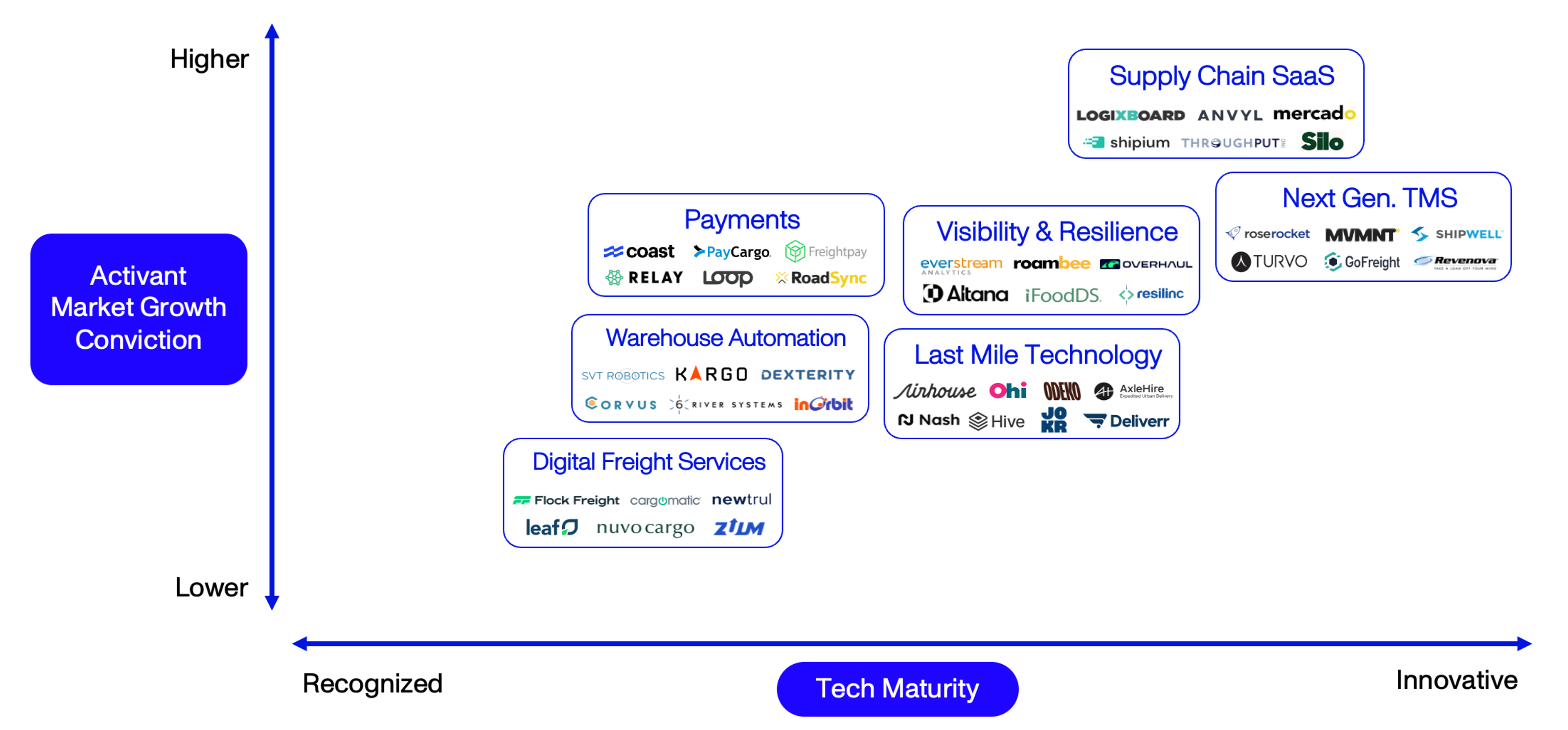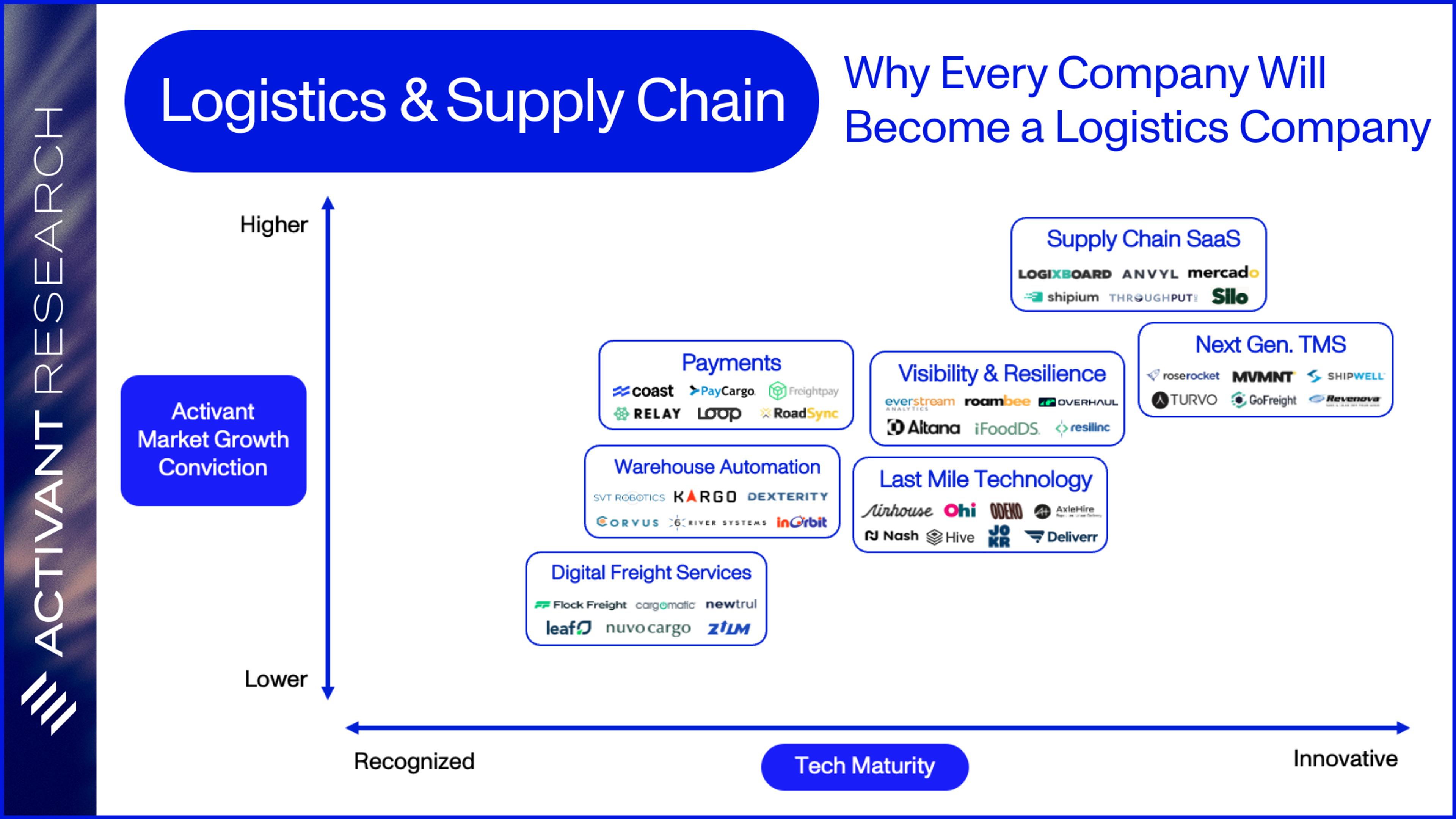 Our Activant Thesis Map lays out our current conviction and belief in the fastest growing and most innovative solution areas for these pain points in logistics. Future articles will dive deeper on individual areas.
