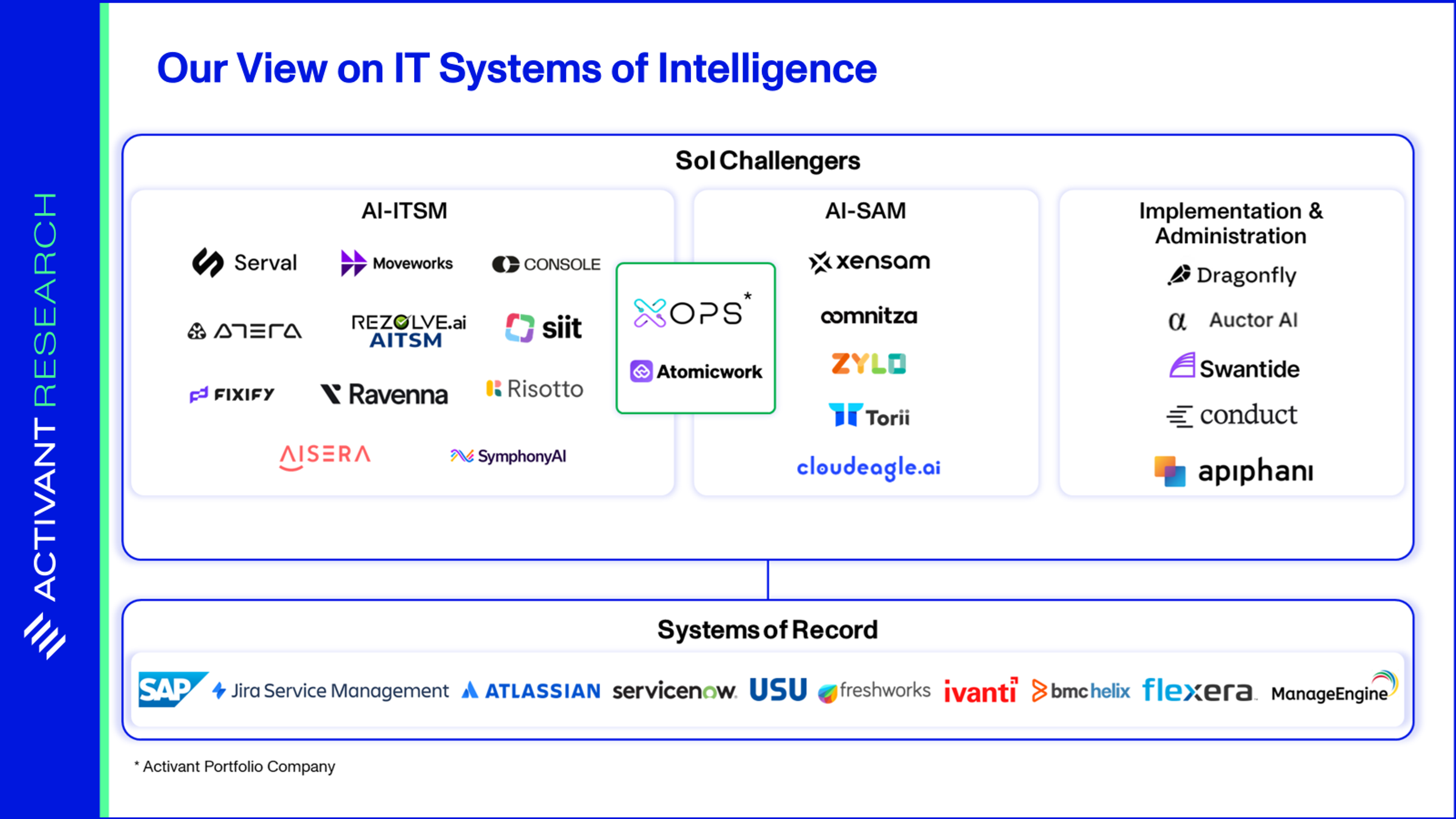 Key challenges with current SAM include the complexity of software vendor use rights, the amount of time and money spent responding to audits, and the lack of resources on SAM teams.4 Activant portfolio company XOPS alleviates that pressure by eliminating the human middleware layer and automating the full software lifecycle management – mapping purchases, entitlements, assignments, devices, and actual usage. It provides organizations enterprise-wide visibility by ingesting existing telemetry and unifying data across employee access, procurement, and vendor entitlement into a confidence-ranked knowledge graph. With asset and entitlement truth in place, XOPS can autonomously execute actions such as license reclamation, right-sizing, and provisioning or deprovisioning to reduce waste and maintain compliance. The result is higher license utilization, always-on compliance monitoring, and materially fewer manual licensing tasks.