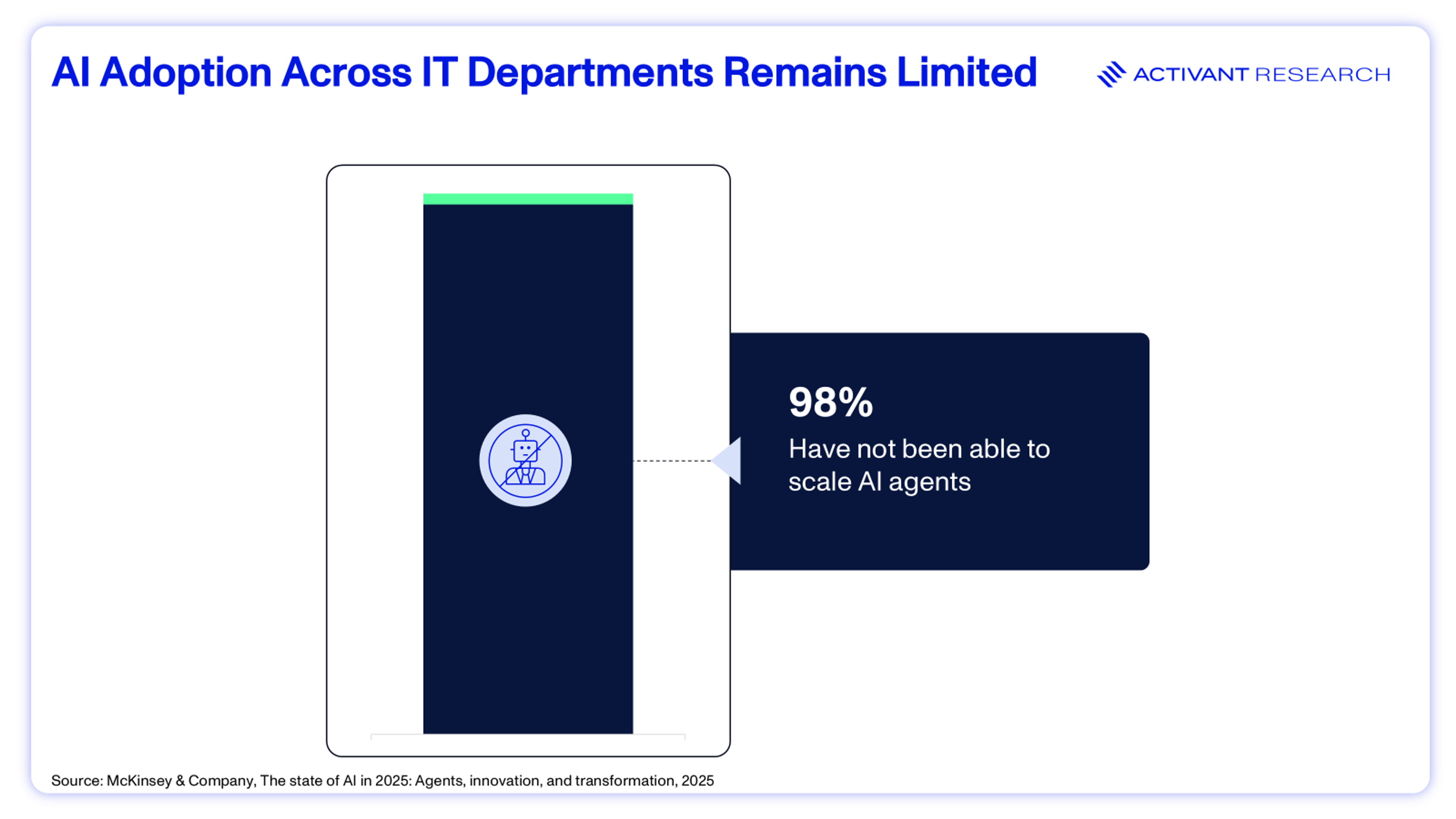 Despite the scale of this opportunity, less than 2% of IT departments have fully scaled AI agents, and 69% have yet to deploy them at all.16 This gap between promise and adoption raises an important question: What is holding enterprises back?