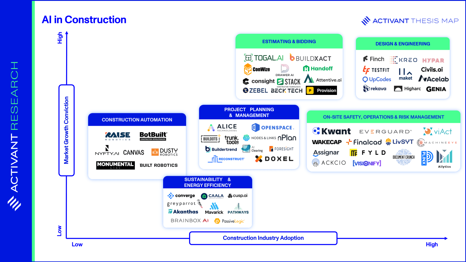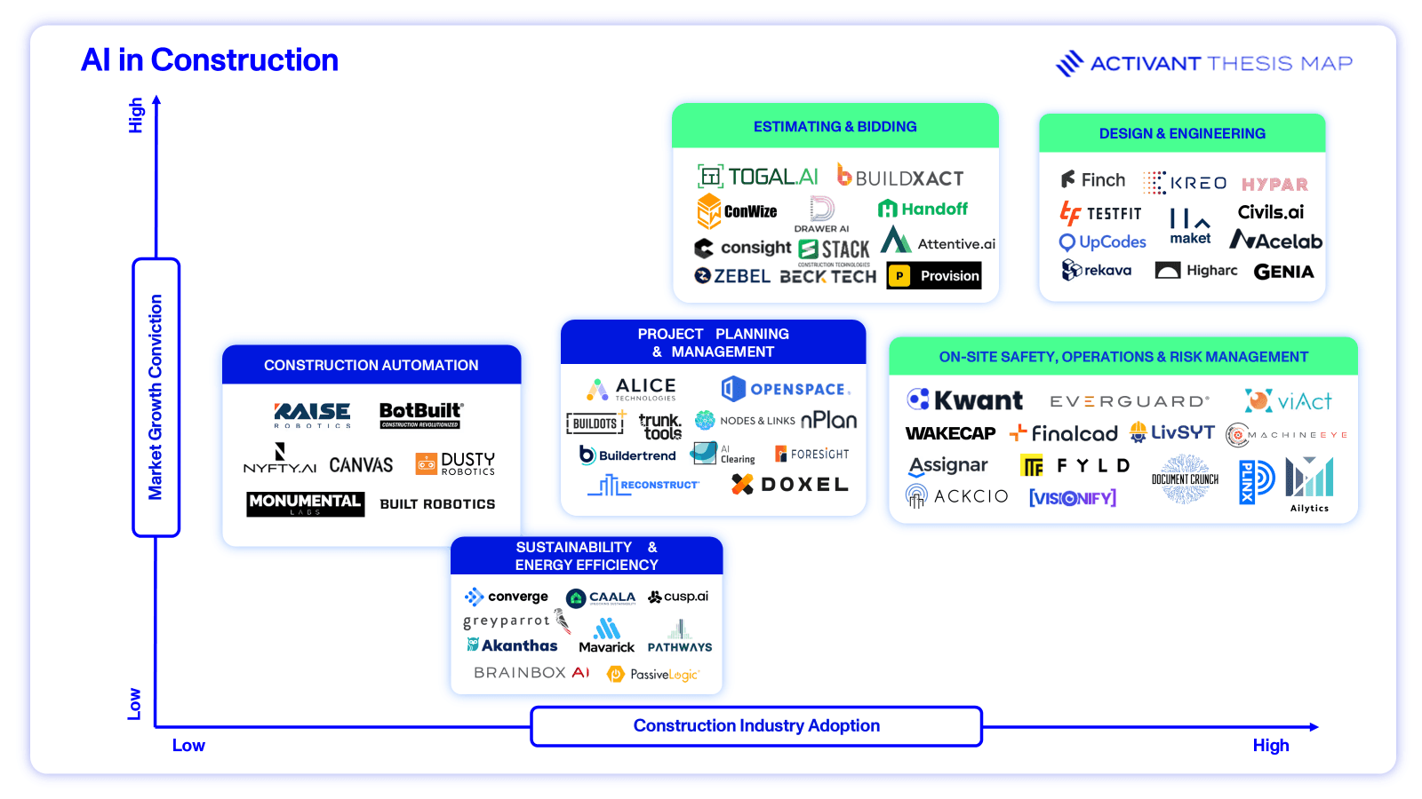We are generally less interested in AI tools within project planning and management, sustainability and energy efficiency and construction automation, but there are still players within these segments that are worth noting.