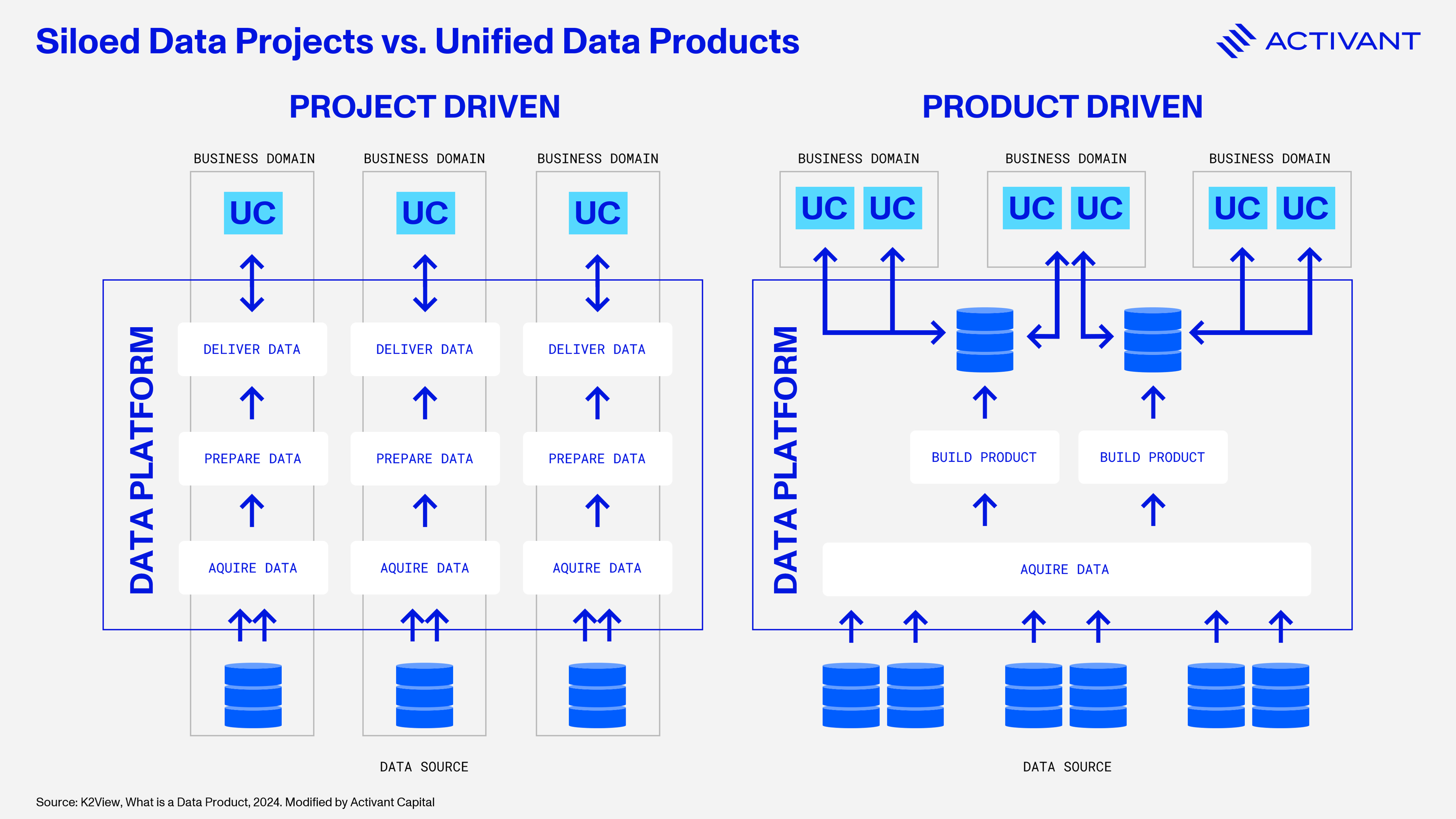 DataOps drives the shift to a product-driven approach, where data is treated as a well-designed product tailored to end users, emphasizing quality, usability, and ease of access. Instead of handling each data request as a separate project per use case (UC), companies make analytics-ready “data products” available through a centralized data hub or marketplace. This internal “store” lets analysts easily browse, select, and access the data they need, offering a seamless experience akin to online shopping and eliminating the need for lengthy preparation processes. Treating data as a product also makes it easier to scale as the core logic for each product resides within a platform and can be reused across teams.