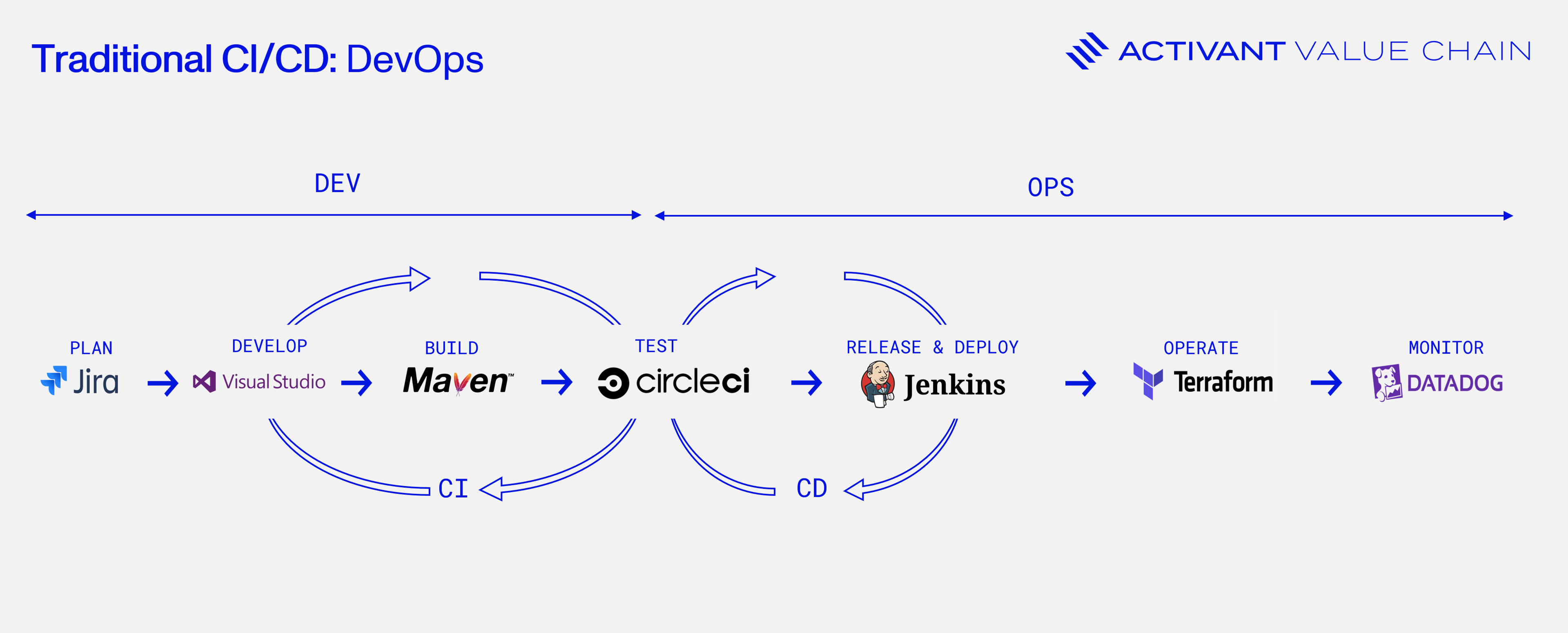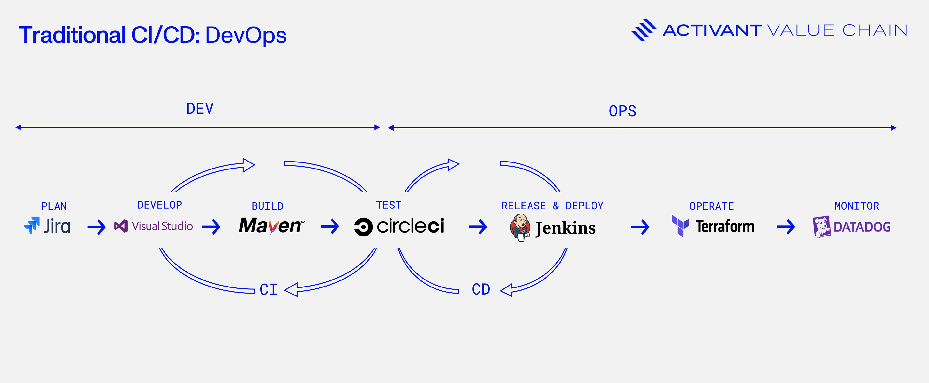 In the early days of software development, developers (Devs) and IT operations (Ops) teams were two ships passing in the night. Developers would craft code, test it in their own environment, and then "toss it over the wall" to IT operations for deployment. This process involved no collaboration and no feedback loop. It was just a handoff, following the sequential legacy waterfall approach to development. A substantial amount of time and energy was wasted on manual code testing and integration, as well as on infrastructure provisioning and maintenance. This disjointed process led to frequent errors, frustrating delays, and a fair amount of finger-pointing.