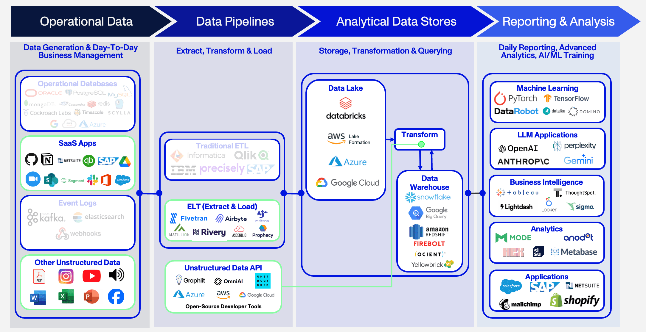 Advances in Artificial Intelligence (AI), particularly in the fields of Natural Language Processing (NLP) and Large Language Models (LLMs), have closed this gap. Deloitte found in a 2019 survey that organizations making use of unstructured data were 24% more likely to exceed their business goals.3 The benefits today are undoubtedly many times greater and the demand for solutions that can prepare unstructured data for AI processing has exploded. It remains to be seen whether the winners will be point solutions integrating with existing tools or new data pipelines designed to accommodate unstructured data.4,5,6,7